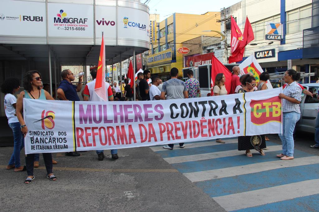 Nesta terça-feira (30), véspera do 1º de Maio – Dia do Trabalhador, a CTB, CUT, Sindicato dos Comerciários, Sindicato dos Bancários, Sindserv, SINDIACS/ACE, Têxteis e Calçadistas, Construção Civil e movimentos sociais participaram, de um Ato contra a nefasta Reforma da Previdência, na Praça Adami, em Itabuna.
