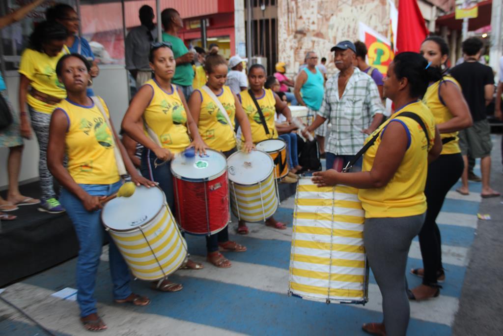 A manifestação também contou com as participações da banda percussiva Negras Perfumadas, da bateria do Ilê Axé Odara e da Charanga da Alegria, que chamaram a atenção dos transeuntes para os perigos que representam a aprovação da Reforma da Previdência.
