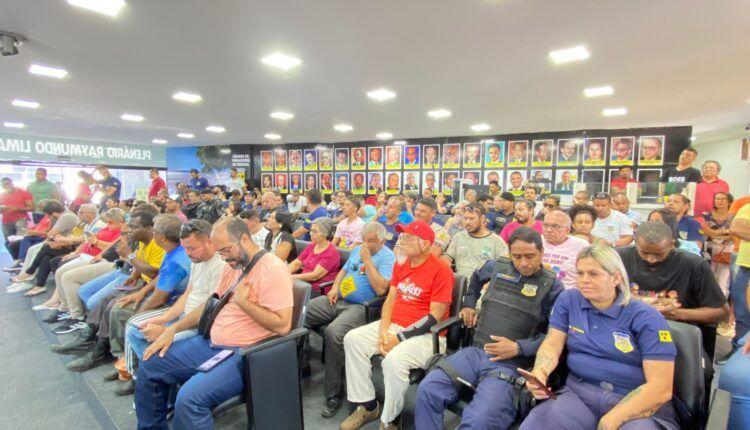 GUARDA – Os servidores e servidoras da Guarda Municipal também participaram deste momento histórico. Foi aprovado que, inicialmente, eles receberão um salário provisório e, num segundo momento, será aprovado o PCCS do setor.